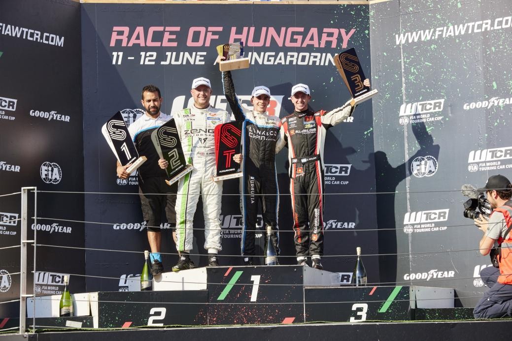 第一回合正赛中,扬·埃赫拉舍保持排位赛优势顺利跑完大半程,虽然亨格罗宁赛道以“难超车”的特性而闻名,但他最终在冲刺前找准时机完成了对前方车手贝松的精彩超越,获得亚军;第二回合正赛中,杆位发车的圣地亚哥·乌鲁希亚发车后保住了杆位并保持优势领跑全程,未给后方对手任何超越的机会;但后方中游集团的争夺尤为激烈,许多车手为完成超越,发生多起赛车碰撞。最终,圣地亚哥·乌鲁希亚收获了他在亨格罗宁赛道的第二个冠军奖杯,真正上演了一场精彩的“大圣”卫冕,续写赛道传奇。
